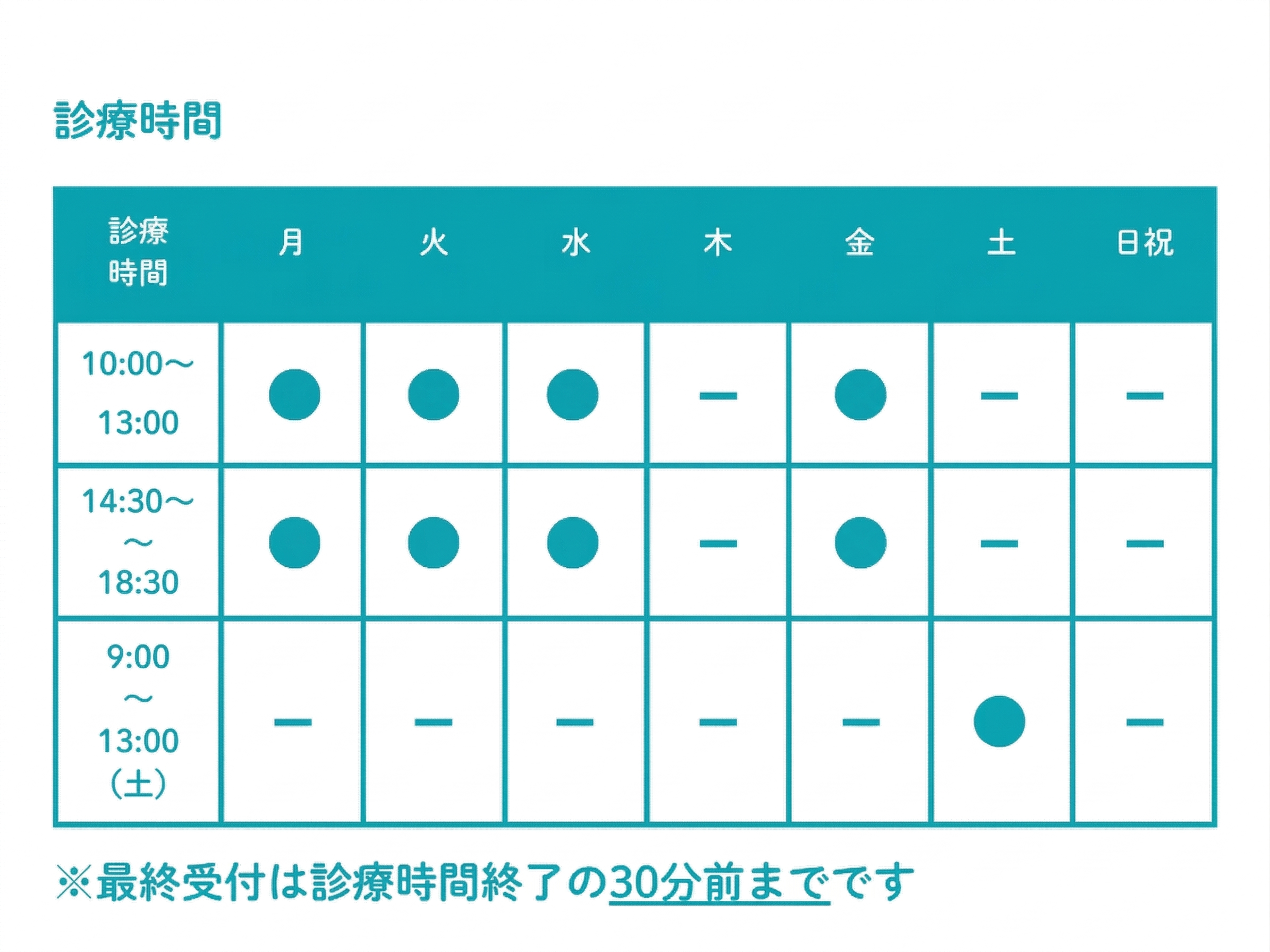 働きながら通院しやすい時間帯に少しでも長く開院できるよう調整しました。