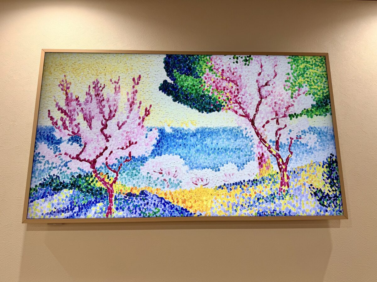 受付番号の表示を想定したデジタルサイネージは、患者さんの数が少ないうちは、アートギャラリーを流しておきます。